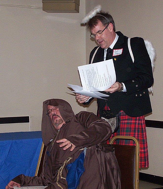 Following the formal installation, the mood was lightened with an hilarious (totally unrehearsed and lightly costumed) St. Andrew's Drama, which outlined the origins of the flag and St. Andrew becoming the patron saint of Scotland. The drama was written, (lightly) costumed, stage managed, directed and narrated by Linda Ferris, exhibiting yet another of her many talents.