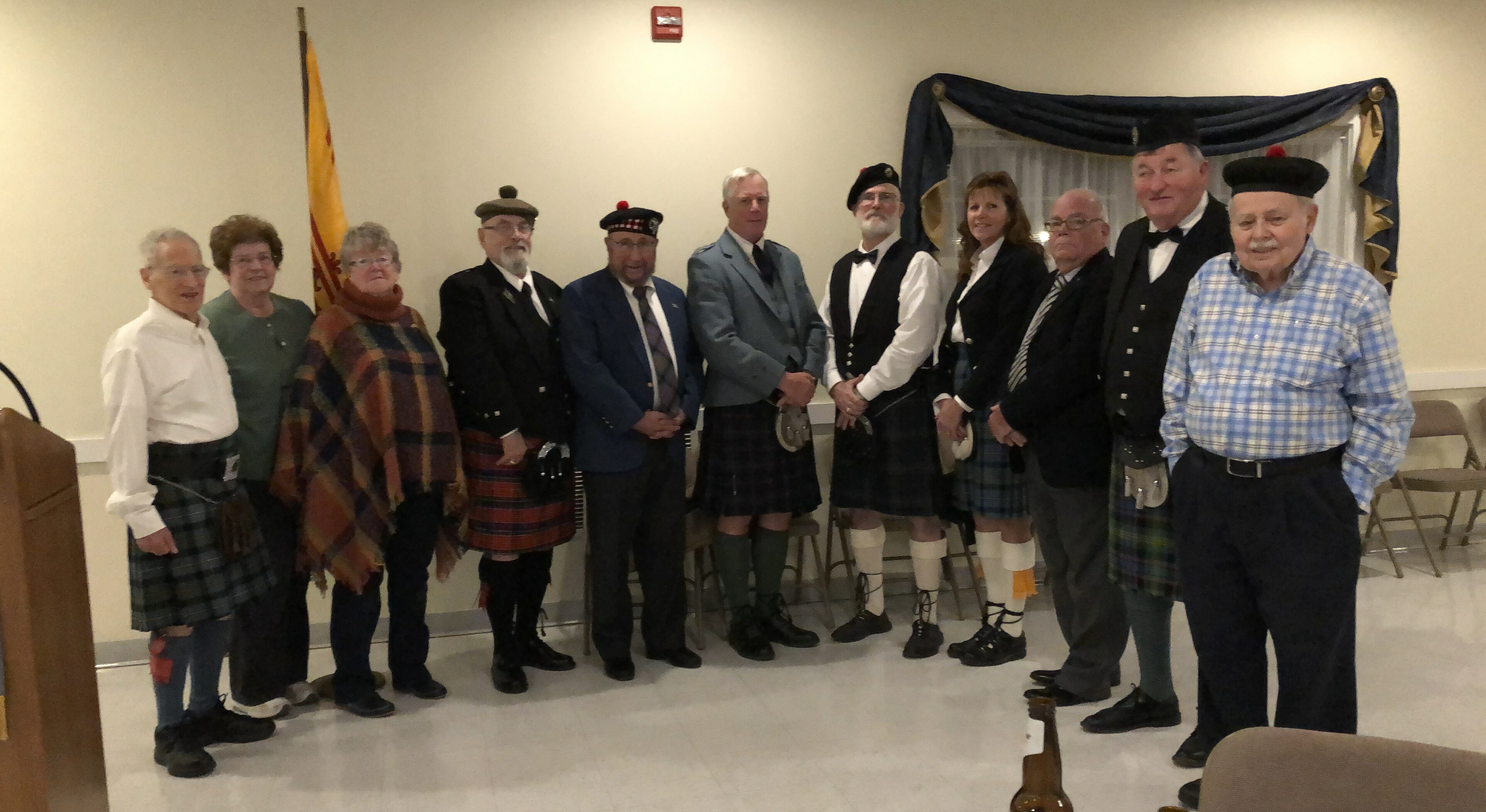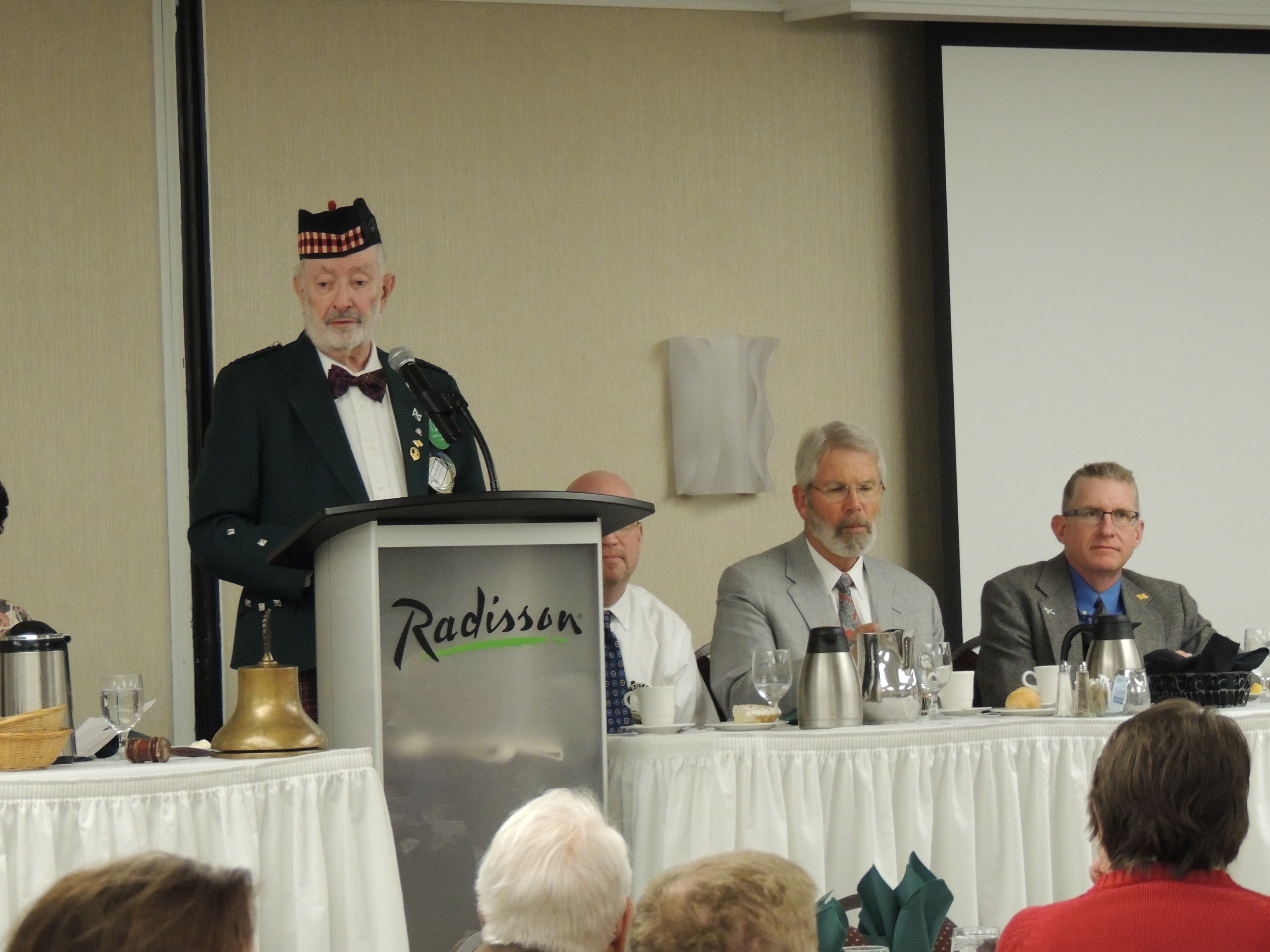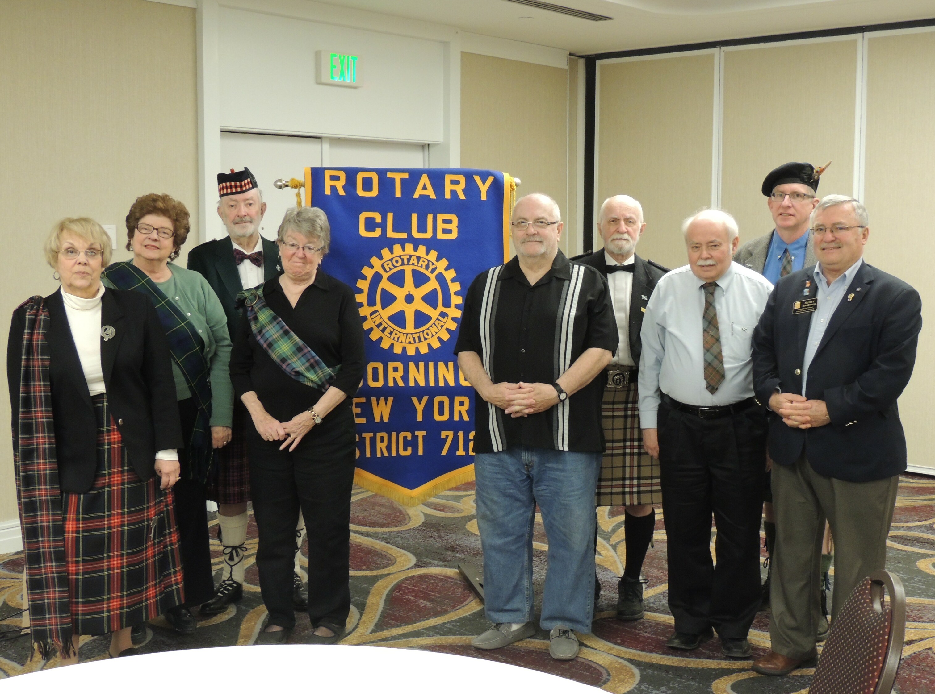 Chief Blake Mayo recently addressed the Corning Rotary Club on many things Scottish, marking Tartan Day April 6. He was introduced by Rotarian/SAS Trustee Herb MacDonell and accompanied by several other Trustees.