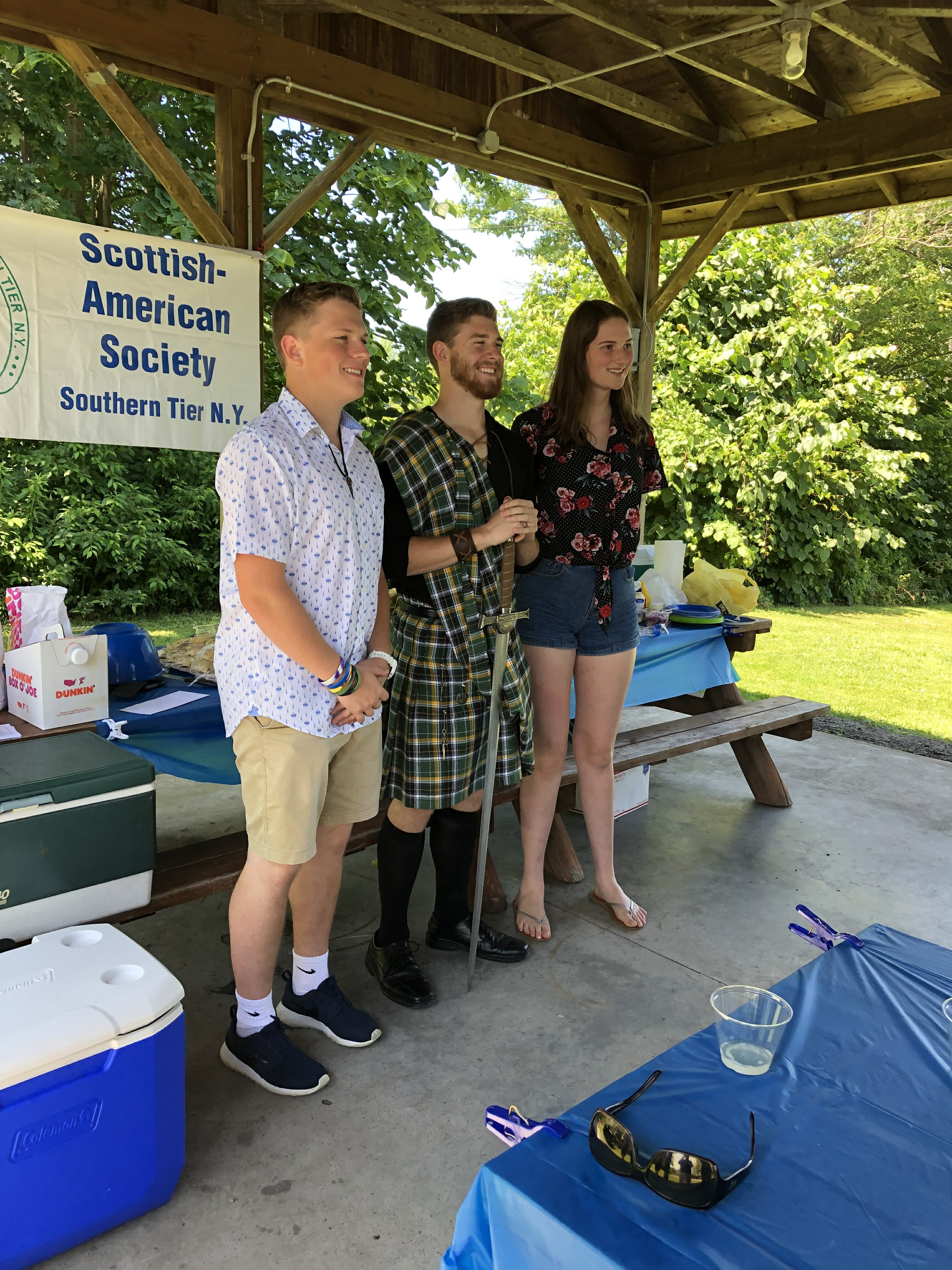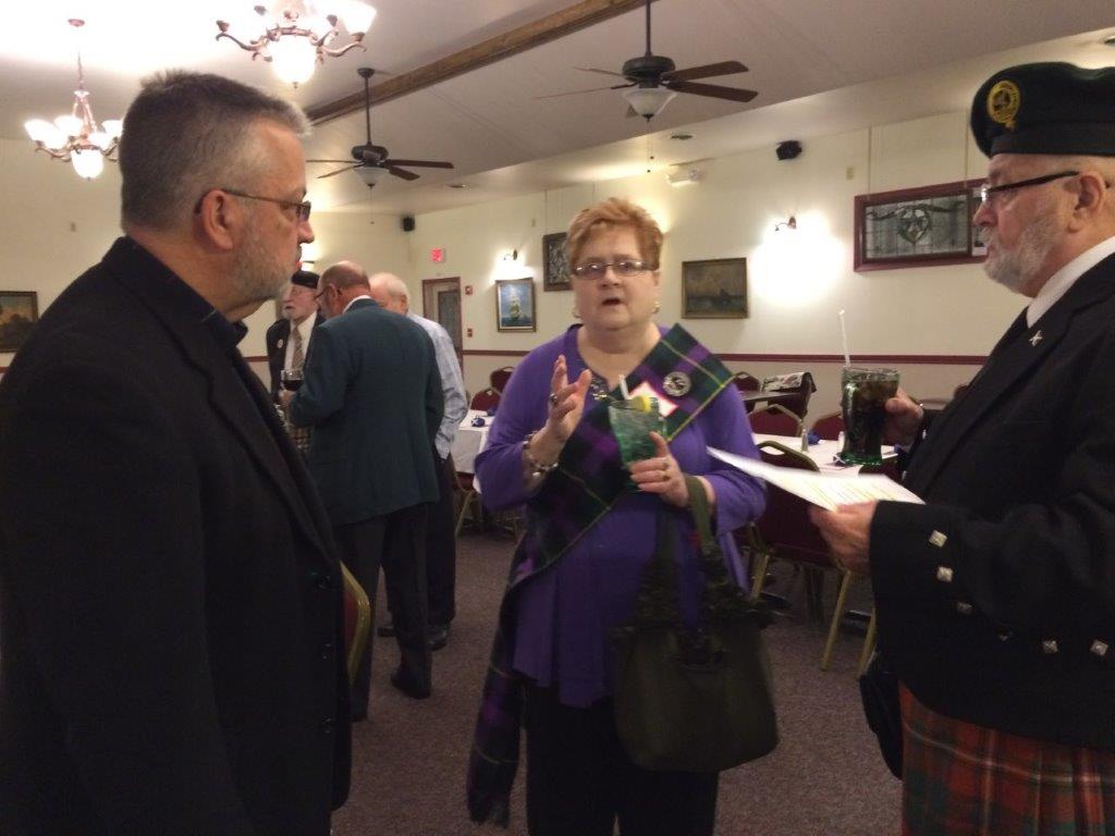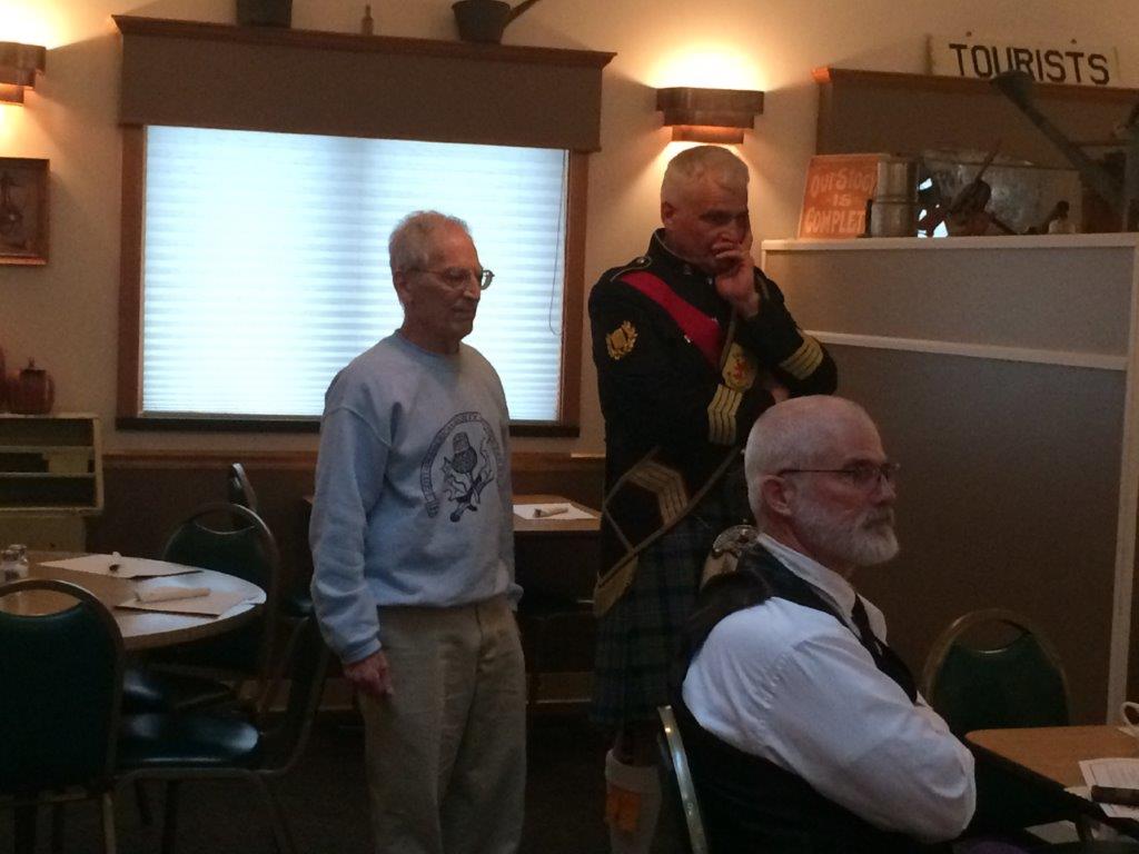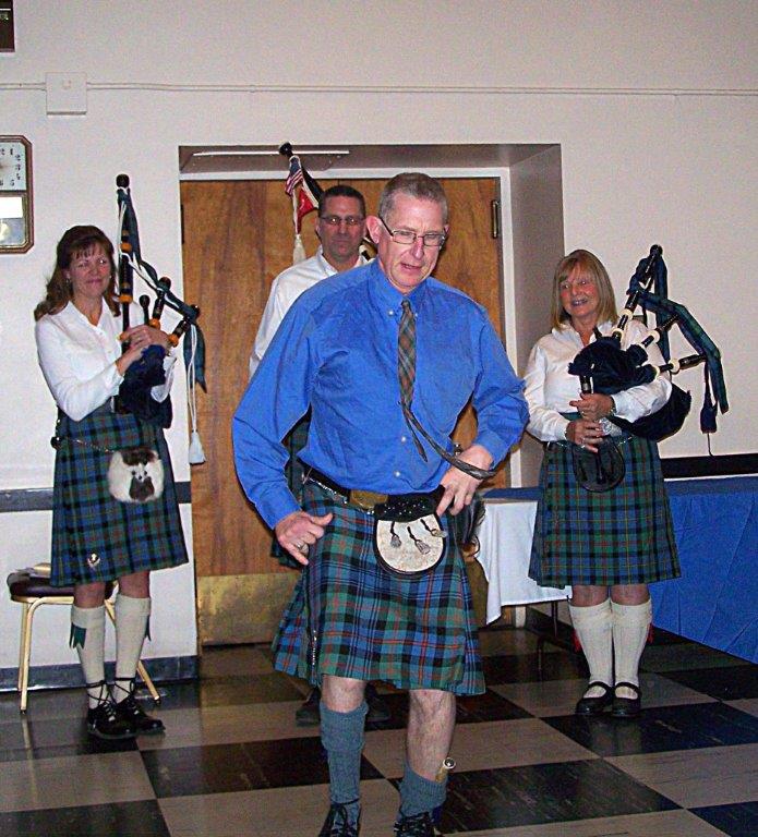 Chief Blake Mayo recently addressed the Corning Rotary Club on many things Scottish, marking Tartan Day April 6. He was introduced by Rotarian/SAS Trustee Herb MacDonell and accompanied by several other Trustees.