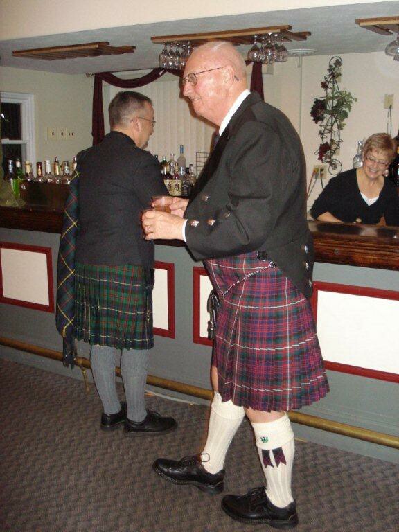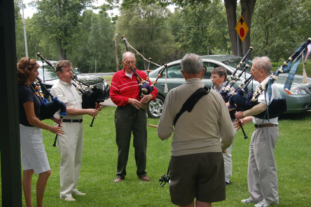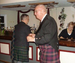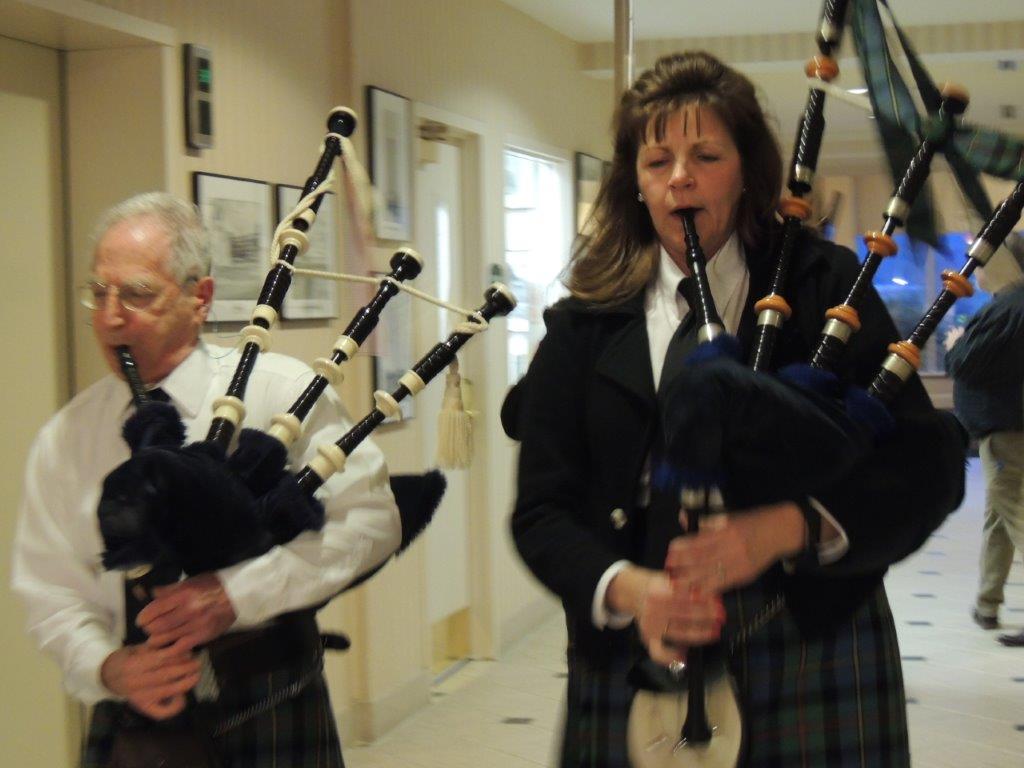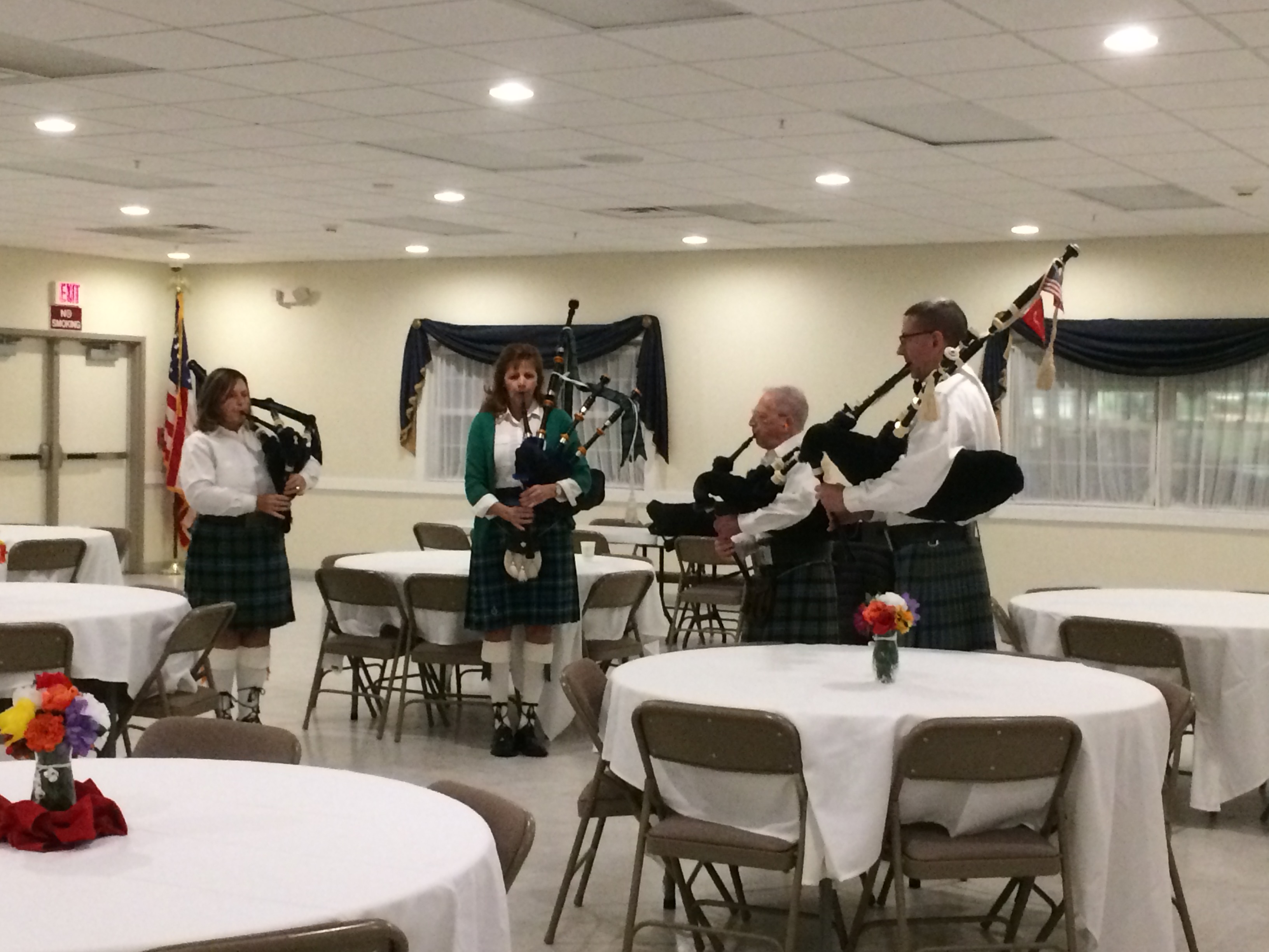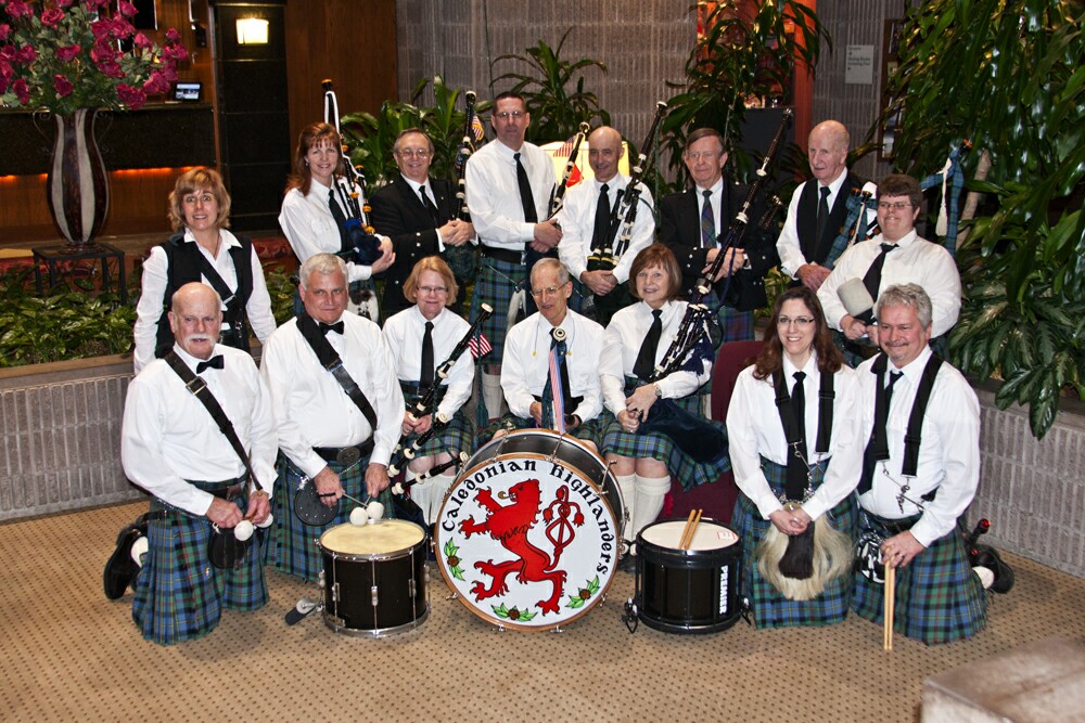The Drama was followed by a selection of tunes by the Caledonian Pipes and Drums, and the audience was treated to a sprightly reel by the Chief, who vowed to do a repeat performance at the Burns Dinner…finally, Dr. Carl Johengen graced the gathering with comical Scottish folk songs about love and marriage.