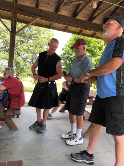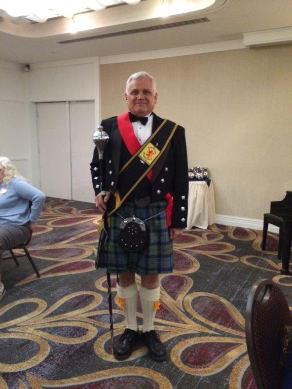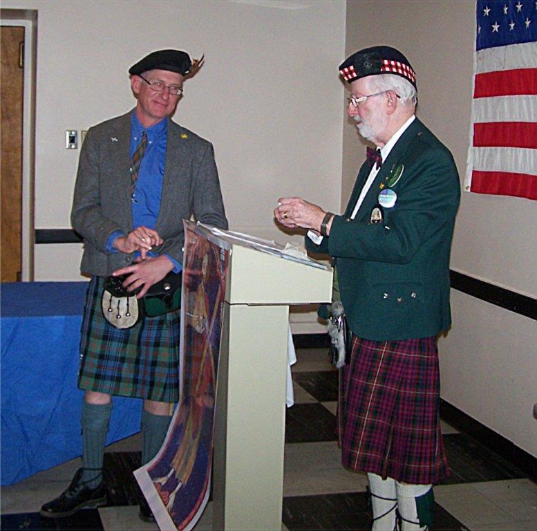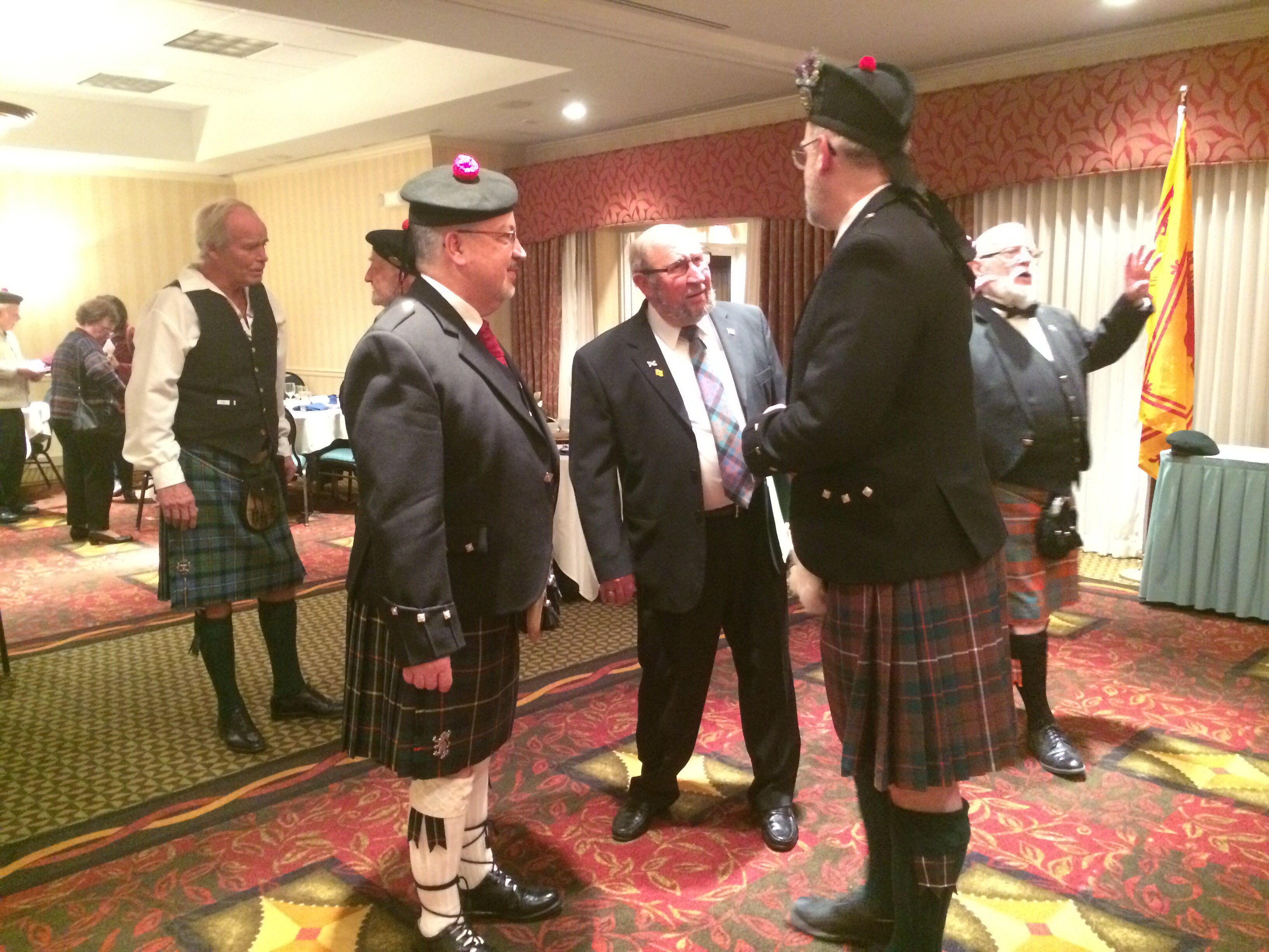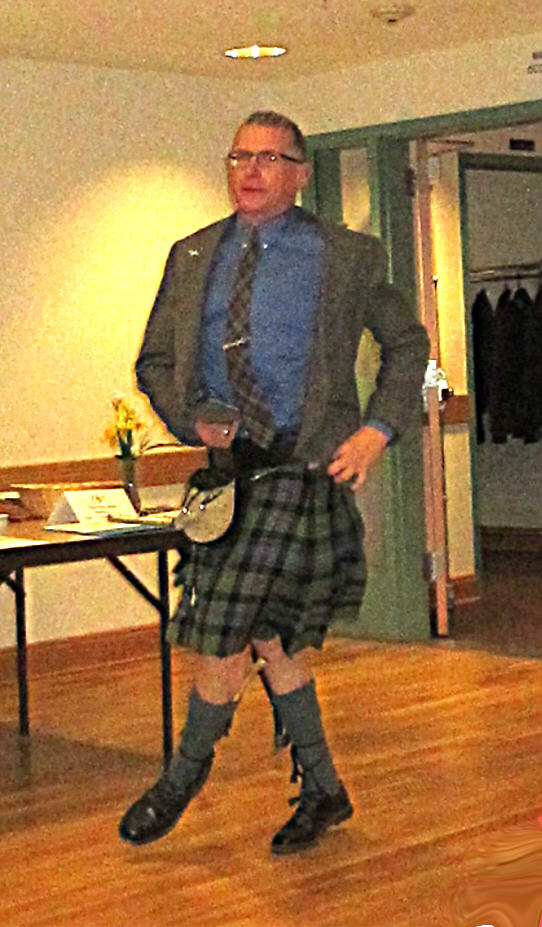 Chief Blake Mayo recently addressed the Corning Rotary Club on many things Scottish, marking Tartan Day April 6. He was introduced by Rotarian/SAS Trustee Herb MacDonell and accompanied by several other Trustees.