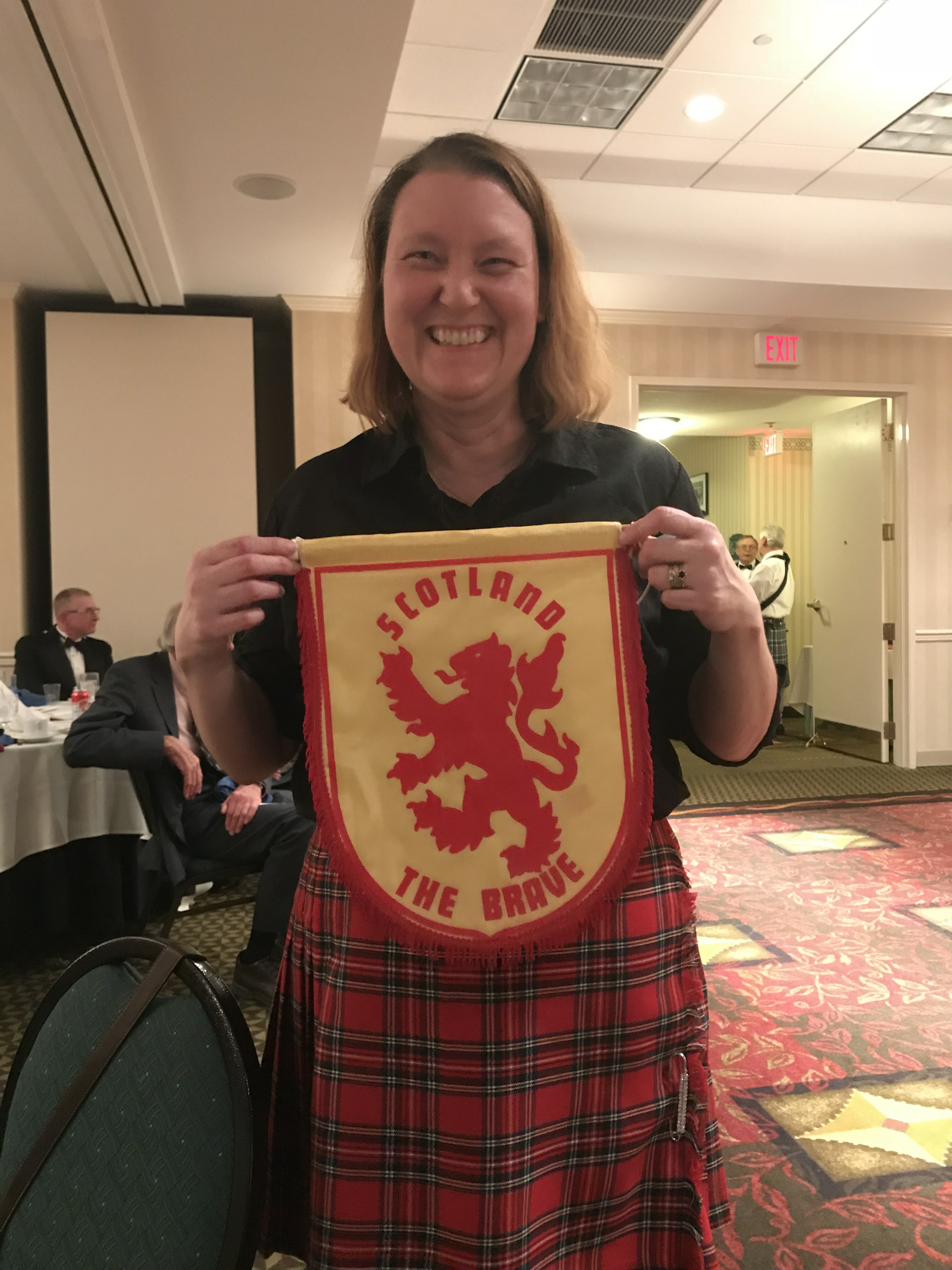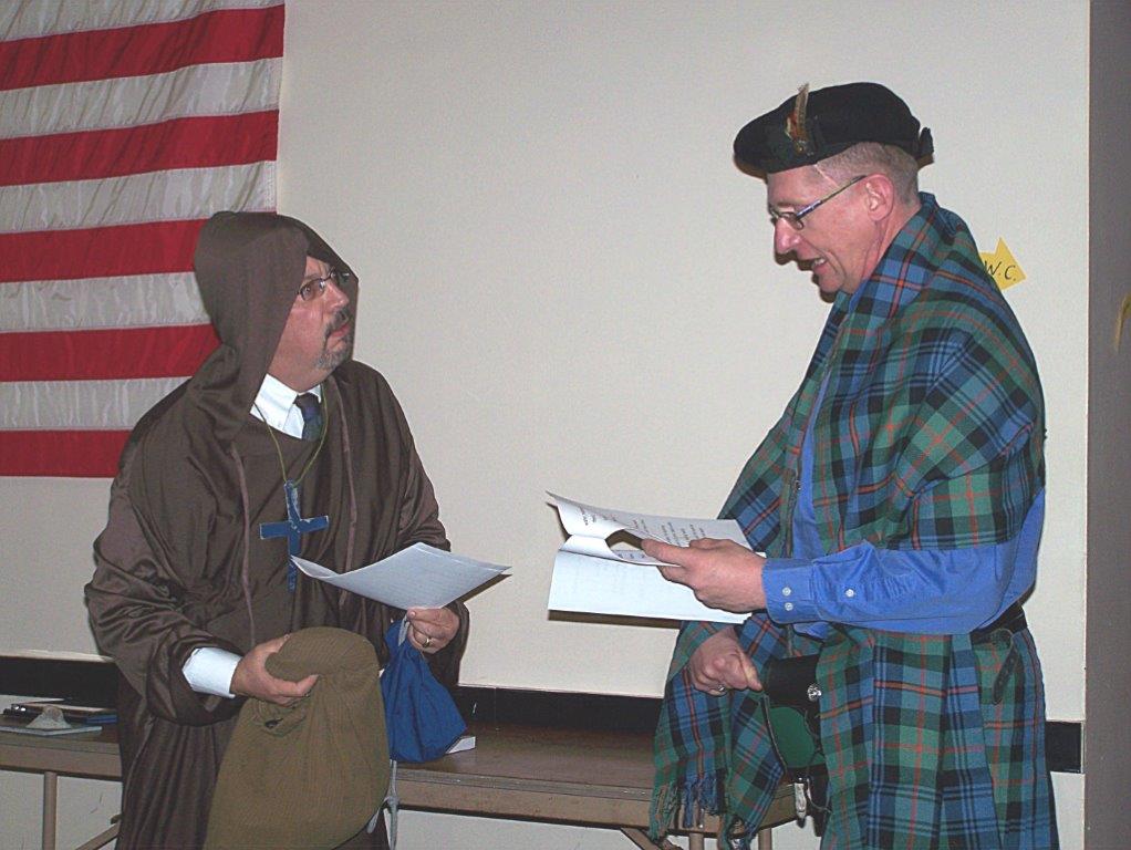 Following the formal installation, the mood was lightened with an hilarious (totally unrehearsed and lightly costumed) St. Andrew's Drama, which outlined the origins of the flag and St. Andrew becoming the patron saint of Scotland. The drama was written, (lightly) costumed, stage managed, directed and narrated by Linda Ferris, exhibiting yet another of her many talents.